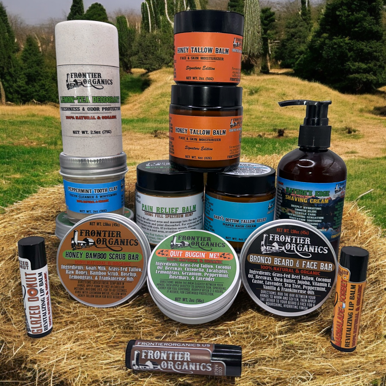 At Frontier Organics, we take pride in crafting our products with the highest-quality ingredients. All of the ingredients we use to make each product is certified organic, and sourced from trusted suppliers. Our tallow comes from a 7,500-acre ranch that’s been breeding grass-fed & finished Angus cattle since 1976, using no antibiotics or hormones, and the processing is done at a USDA-inspected facility to ensure quality and safety. While our small business itself is not certified organic, we are transparent about every ingredient and its sourcing and use only ingredients that are natural and organic to give our customers purely the best product. We invite anyone with questions about our practices to reach out directly. We’re always happy to share more details!